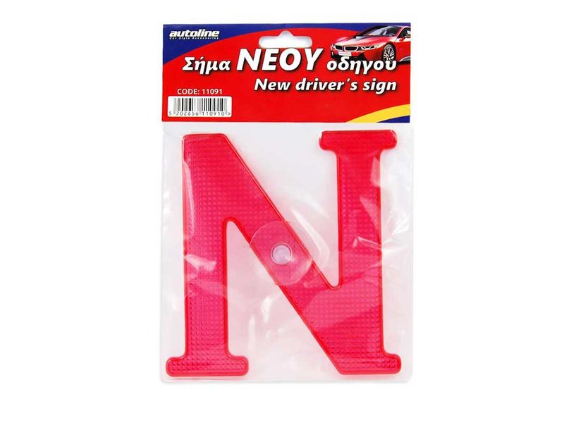Σήμα Ν, νέου οδηγού, πλαστικό, αντανακλαστικό, από την autoline.